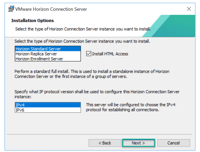 The first Horizon Connection Server you install will be referred to as a Horizon 8 Standard Server during the installation process.