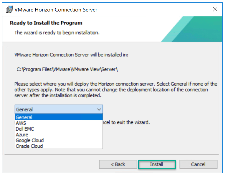 - On the Ready to Install the Program page, with horizon 8 2006 there are new options to select for your deployment: