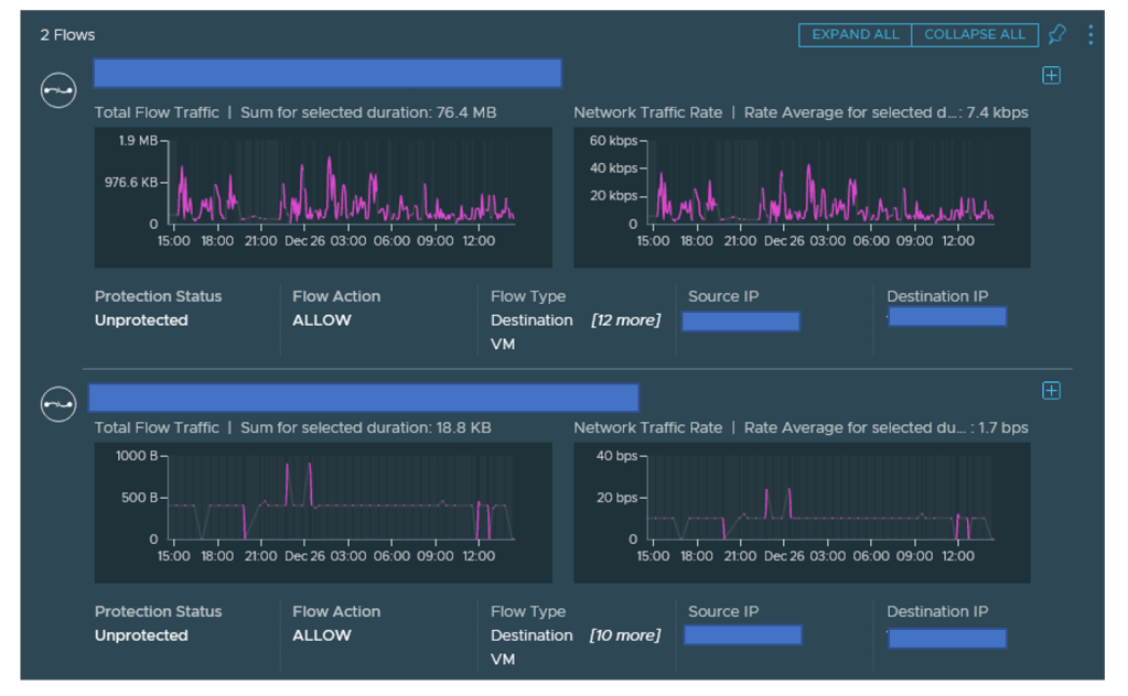 Here we can then investigate the problematic flows, other network issues, security gaps (unprotected flows) etc.